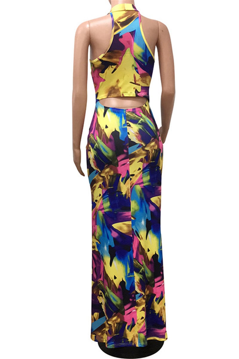 Multi colored dress with cut out mid back. 88% Polyester 12% Spandex Machine wash Air Dry True to size